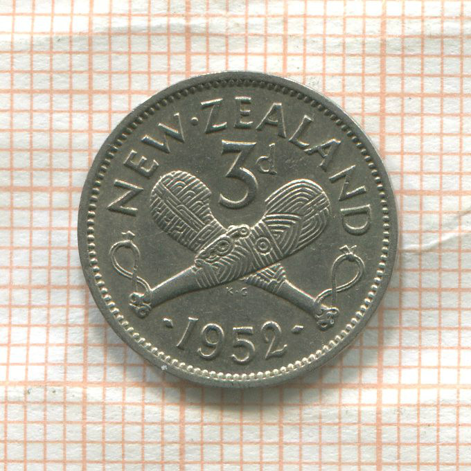 3 пенса. Новая Зеландия 1952г