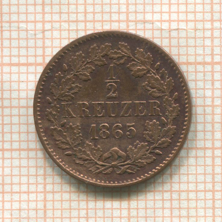 1/2 крейцера. Баден 1865г