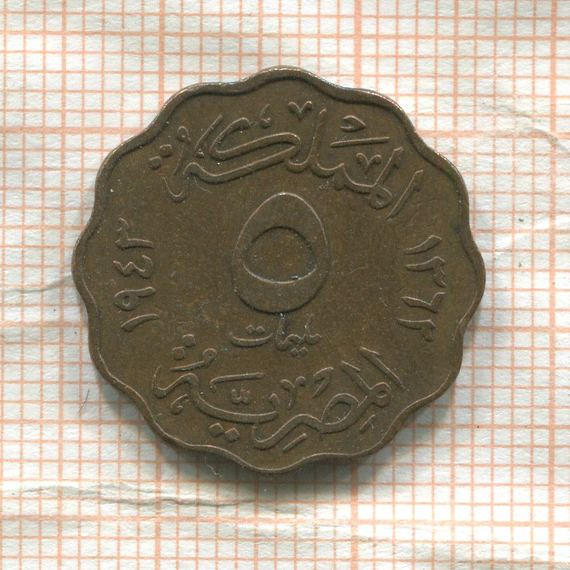 5 миллимов. Египет 1943г