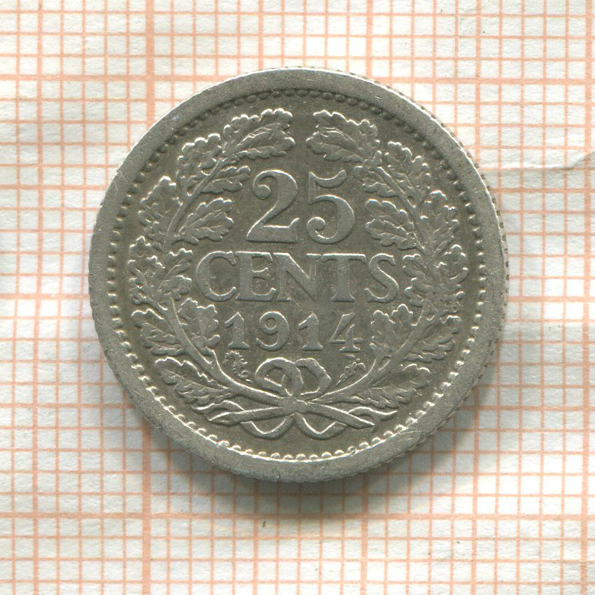 25 центов. Нидерланды 1914г