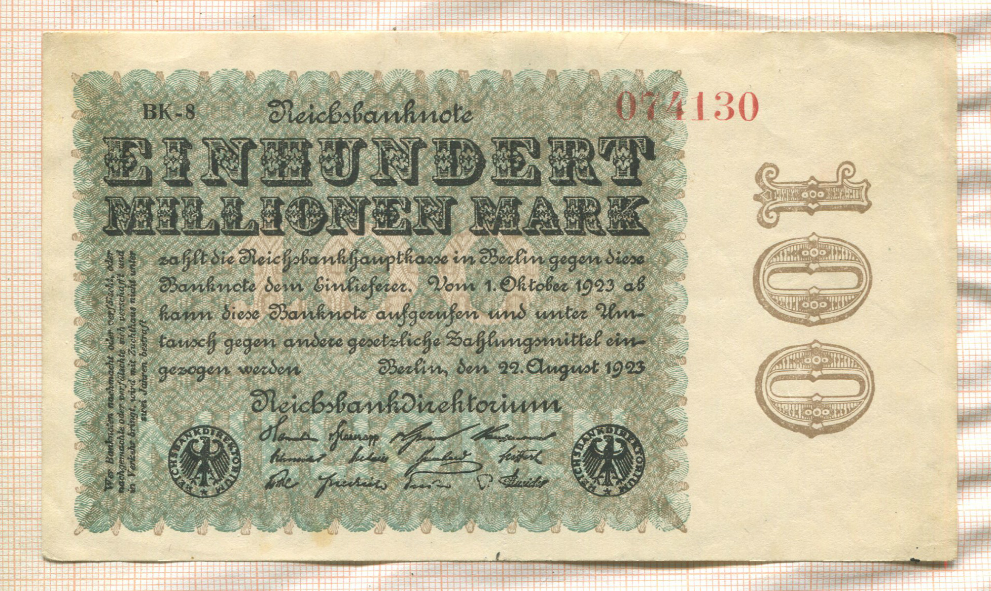 100000000 марок. Германия 1923г