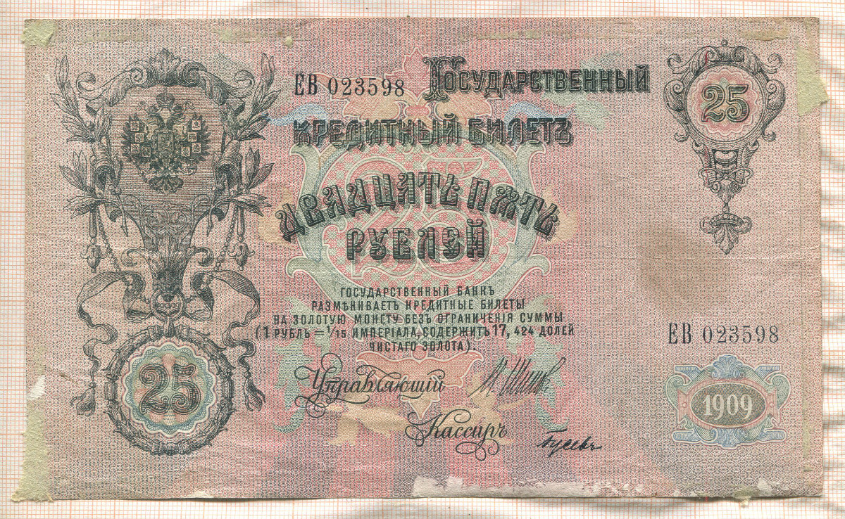 25 рублей. Шипов-Гусев 1909г