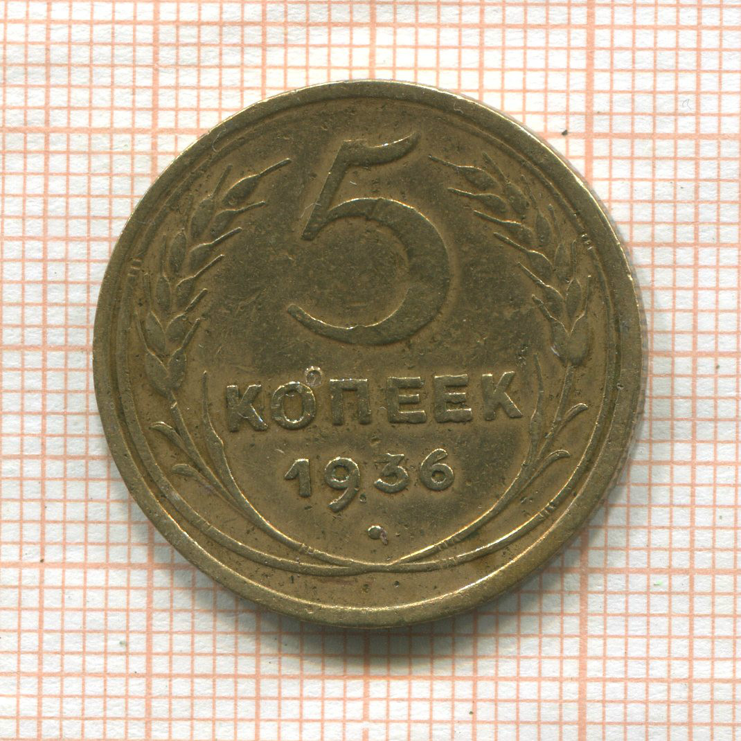 5 копеек (деформация - немного вогнута) 1936г