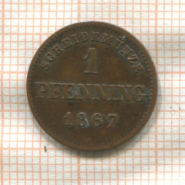 1 пфеннинг. Бавария 1867г
