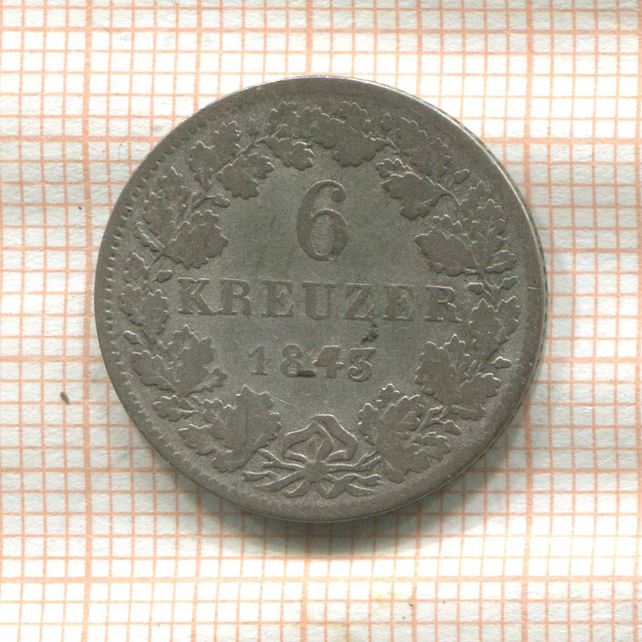 6 крейцеров. Гессен-Дармштадт 1843г