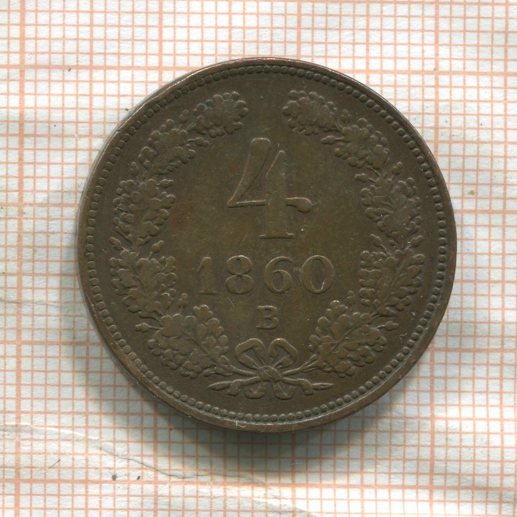 4 крейцера. Австрия 1860г