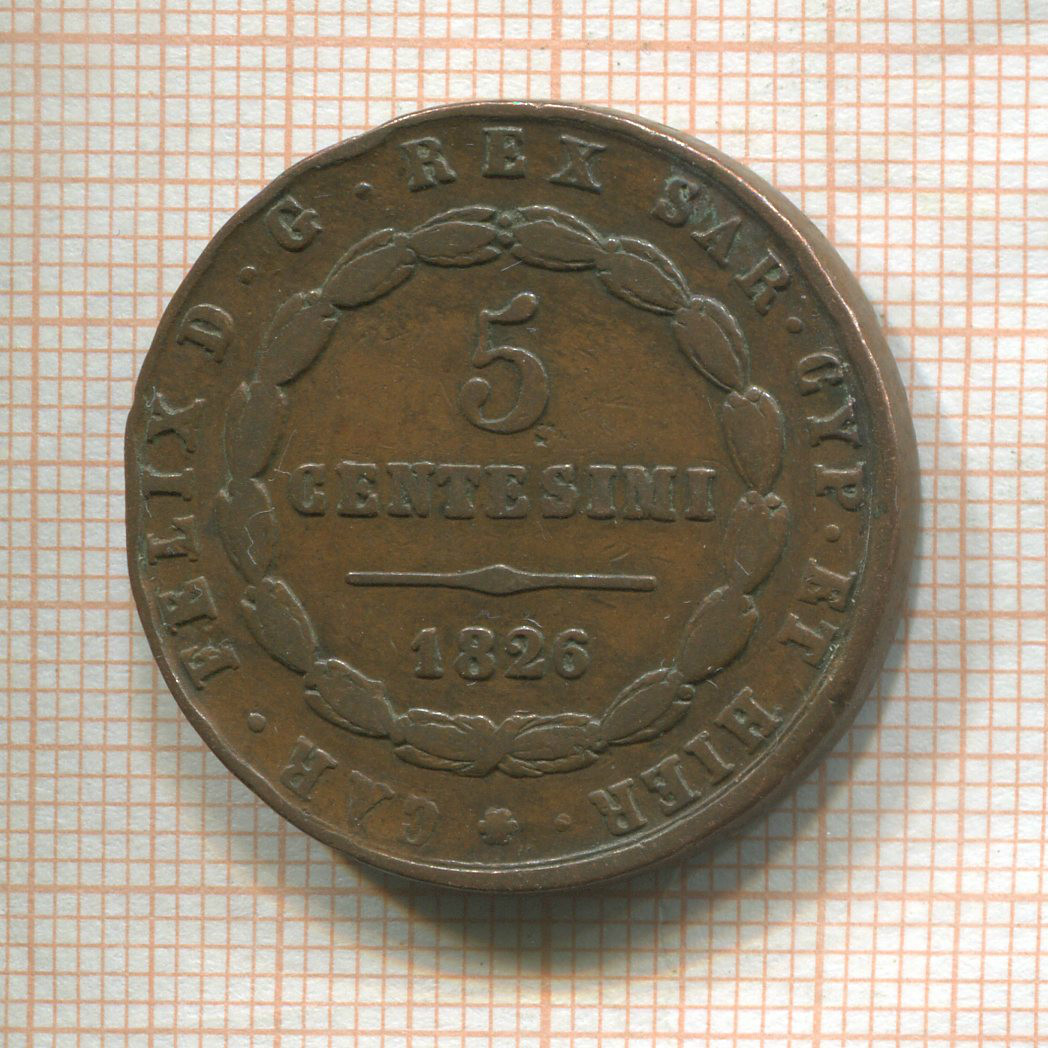 5 сентесимо. Италия. Сардиния 1826г