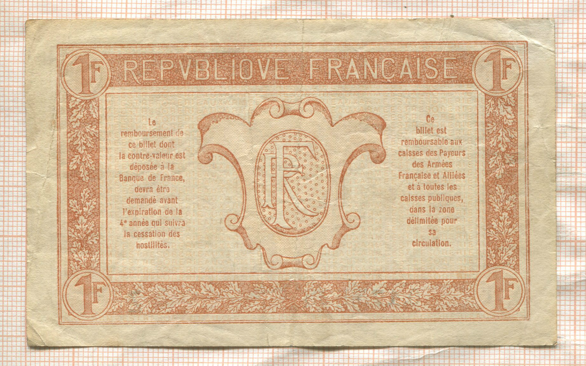 1 франк. Франция. Выпуск для военного казначейства. Первая Мировая война