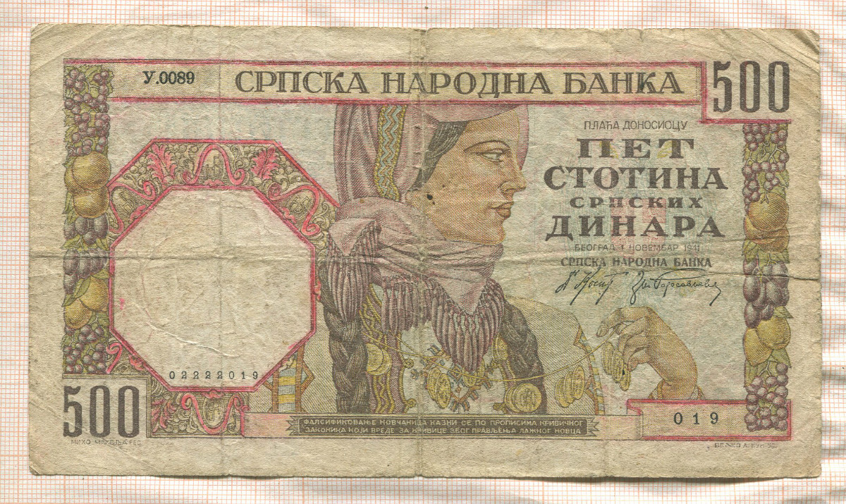 500 динаров. Сербия 1941г