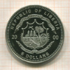 5 долларов. Либерия. ПРУФ 2000г