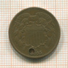 2 цента. США. (отверстие) 1865г